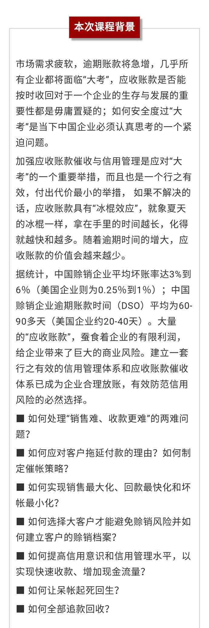 【公開課預(yù)告】2019年10月26-27日應(yīng)收賬款催收30計、信用管理與全款追賬策略公開課