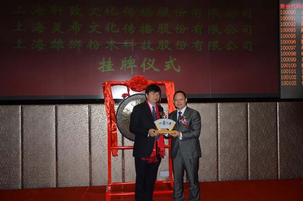 隨后,丁興良董事長與股權(quán)托管中心高管互相交換禮物,丁興良董事長收到了股權(quán)交易中心送出的標(biāo)志著成功掛牌上市的縮小版銅鑼,作為留念。之后靈希股份掛牌儀式進(jìn)入最關(guān)鍵的環(huán)節(jié),11時(shí),丁興良董事長與嘉定區(qū)區(qū)委常委副區(qū)長費(fèi)小妹共同敲響上市銅鑼,標(biāo)志著靈希股份正式登陸上海股權(quán)交易中心,成為國內(nèi)第一家成功掛牌上市的管理咨詢與培訓(xùn)公司。