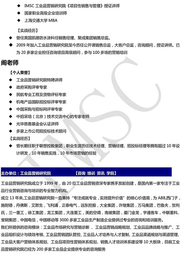【往期公開(kāi)課】工業(yè)企業(yè)營(yíng)銷生態(tài)圈-大客戶實(shí)戰(zhàn)銷售秘笈與招投標(biāo)11月25-26日