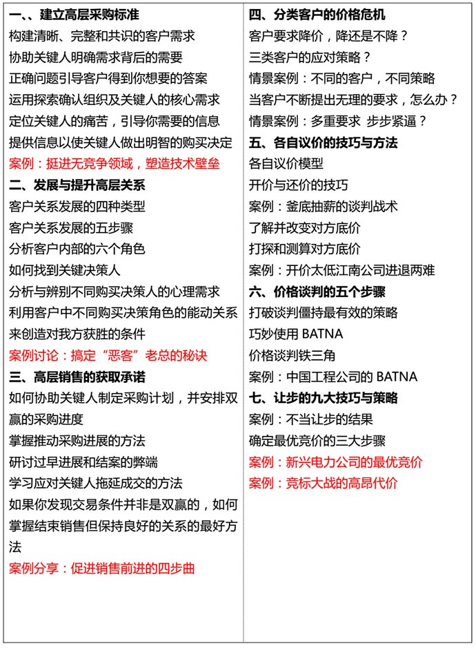 | 決策層公關(guān)與價格談判鐵三角 | 1天 | 2500元/人 |